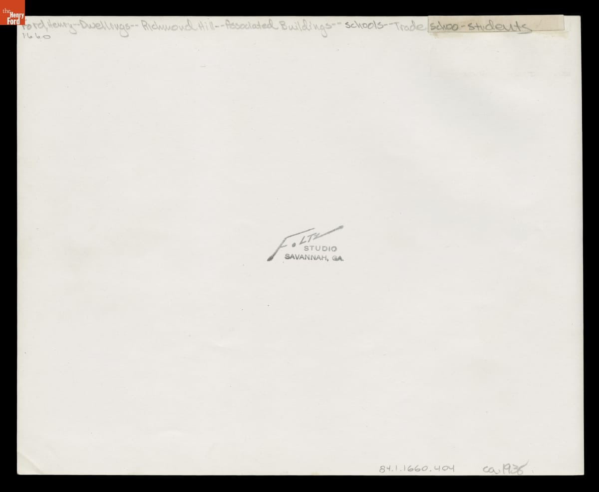 Starting in the 1920s, Henry Ford purchased vast amounts of land around present-day Richmond Hill, Georgia. Here, Ford dabbled in agricultural experimentation, and he built a winter home. Ford spent $13,000 constructing a trade school with a powerhouse, a small sawmill, and a machine shop. Local boys were trained at the school in woodworking and metalworking.