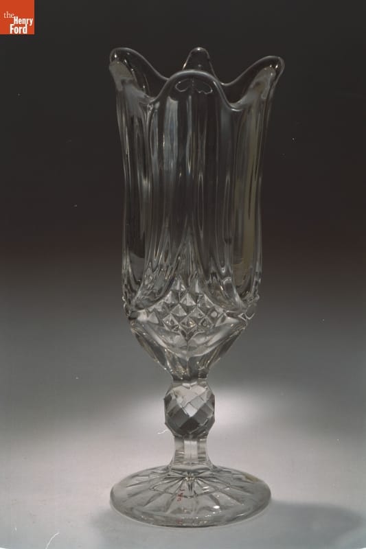Class-conscious Americans in the late 19th century displayed their social standing by serving a variety of exotic foods in specialized tableware. Celery vases or glasses held the costly and status-laden vegetable. This tall, pressed glass vase became a middle-class necessity until growing methods made celery common and the dish less socially significant.
