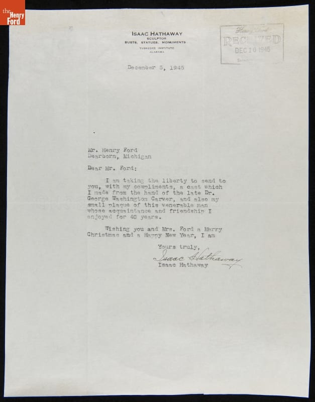 Letter from Isaac Scott Hathaway to Henry Ford, December 5, 1945