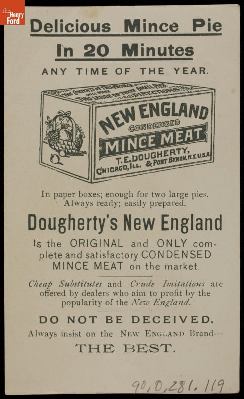 Trade Card for Dougherty's New England Condensed Mince Meat, T.E. Dougherty, 1880-1883