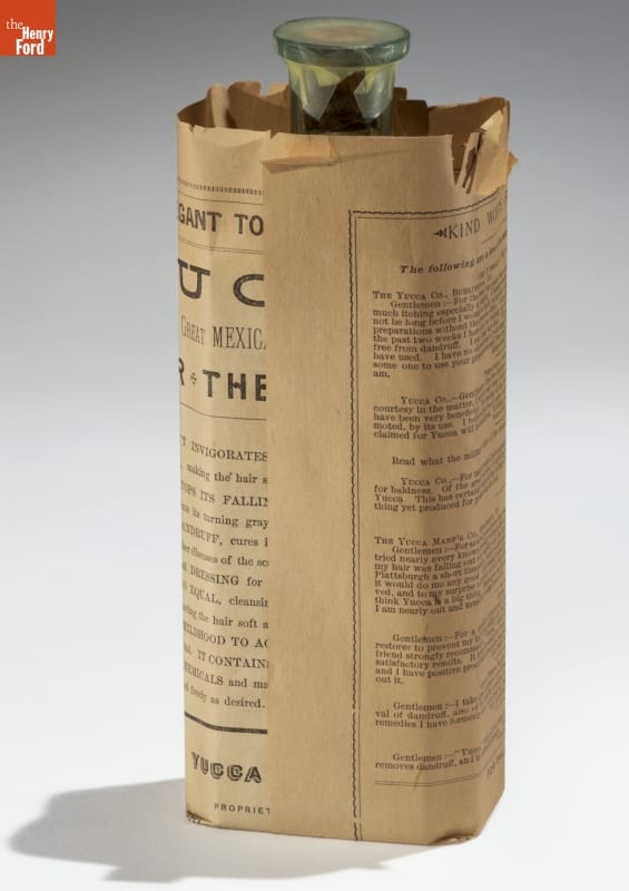 People have sought a cure for hair loss for thousands of years. In the late nineteenth-century, the makers of "Yucca for the Hair" marketed their concoction as a cure for baldness, dandruff, and other diseases of the scalp. The proprietors of this patent medicine claimed the plant-based extract invigorated the scalp, promoted hair growth and rendered hair "soft, glossy and luxuriant."