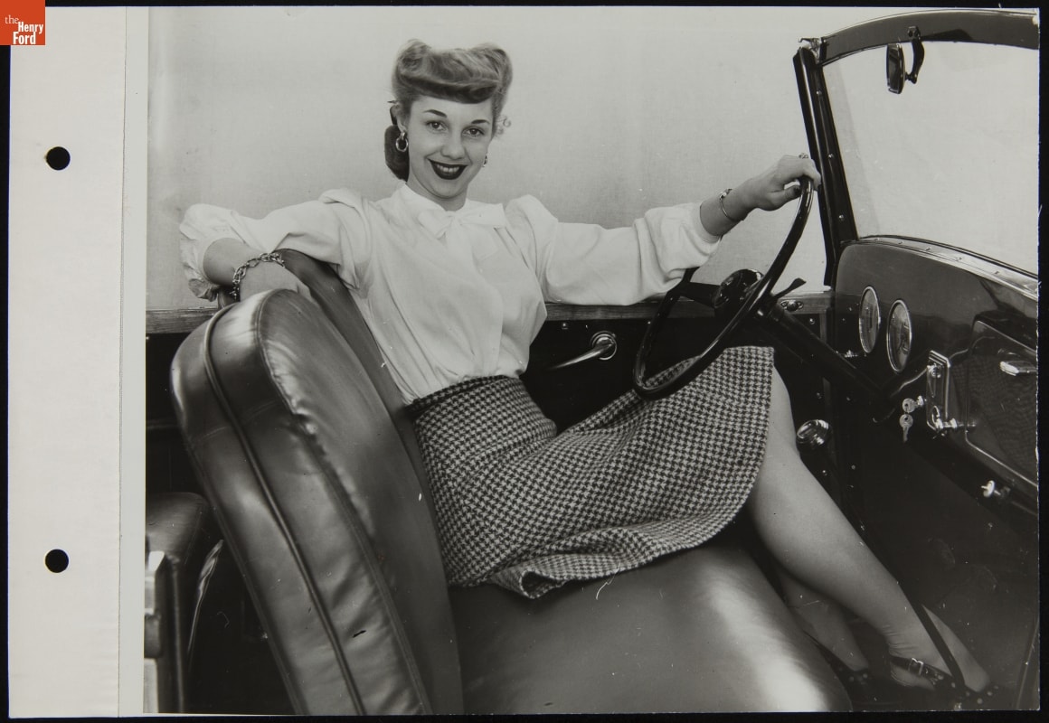 Leota Carroll was the first woman hired into Ford Motor Company's Design Department. Carroll, a talented illustrator, joined the company during World War II -- a time when most men were off fighting. Her success prompted Ford to hire other women onto its design staff. In addition to her regular duties, Carroll also occasionally posed in Ford promotional photographs.