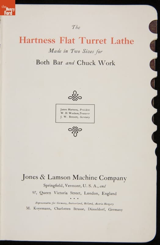 THF287579 / "The Hartness Flat Turret Lathe Made in Two Sizes for Both Bar and Chuck Work," 1907 / title page