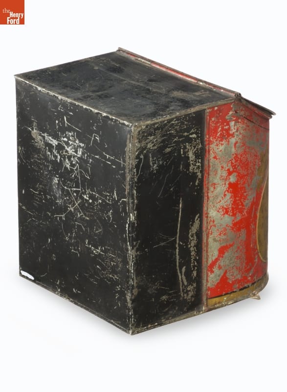 Before products like coffee, tea, and spices were individually packaged with company labels and logos grocers dispensed them from metal bins and canisters. These large tin containers were not only a convenient storage place that kept products dry, but their colorful painted, printed, and stenciled decorations provided an attractive display on the store's shelves and counters.
