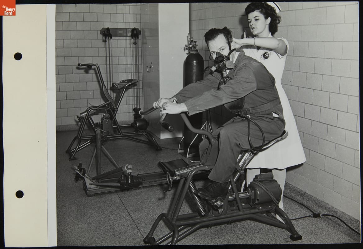 Nurse Assisting Man with Denitrogenation for Altitude Flying, Willow Run Bomber Plant, October 1943