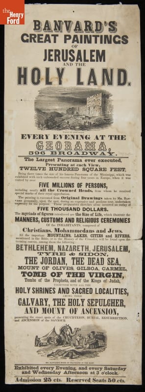John Banvard entertained hundreds of thousands of mid-nineteenth-century Americans with his panorama of the Holy Land. This massive mural -- painted after his trip to the Near East -- depicted historic and religious scenes of Jerusalem and Palestine. For two years, from 1852-1854, audiences in New York City's Georama Theater marveled as each tableau on the canvas scrolled past.