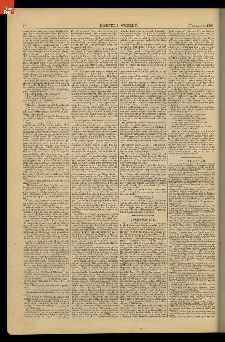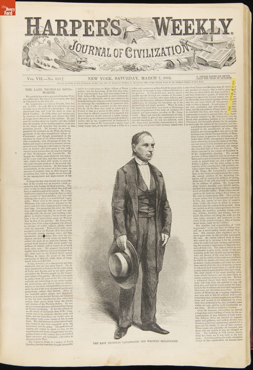 Harper's Weekly began publishing in 1857. Published by Harper & Brothers, issues contained news articles, literary works, essays, and illustrations depicting life in America and around the world. Harper's Weekly ceased publication in 1916.