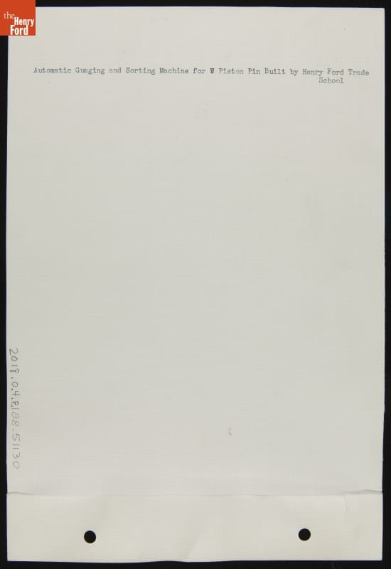 Automatic Piston Pin Gauging and Sorting Machine Designed by Claude Harvard, Photographed in Henry Ford Museum, 1942