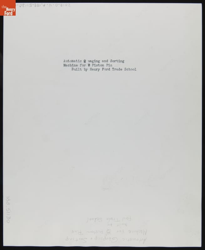 Automatic Piston Pin Gauging and Sorting Machine Designed by Claude Harvard, Photographed in Henry Ford Museum, 1942
