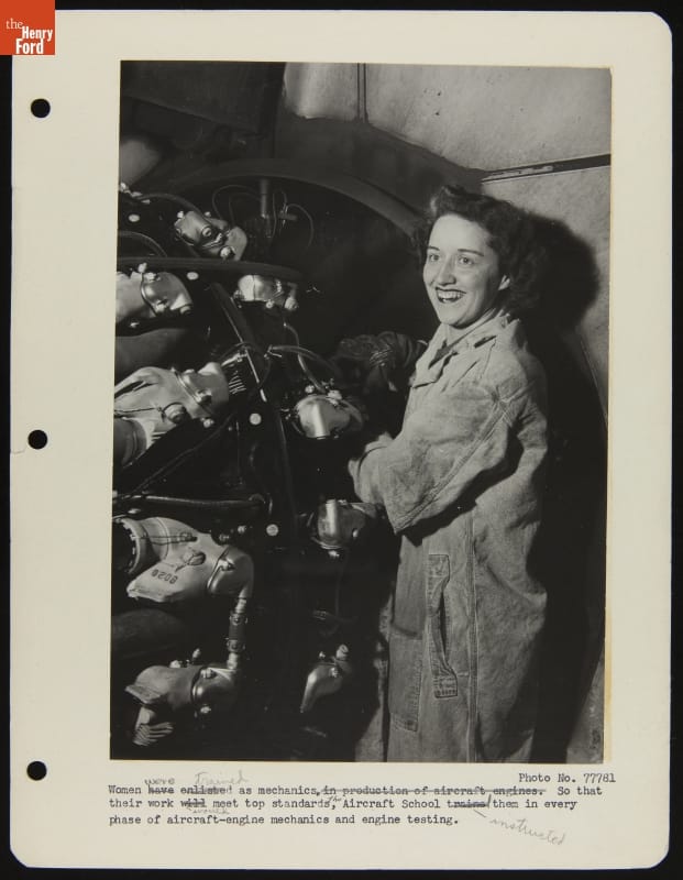 During World War II, women joined the workforce in record numbers to take on essential jobs traditionally held by men who had joined the armed forces. At Ford Motor Company, this included work on Pratt & Whitney R-2800 aircraft engines built in a special facility at the Rouge. Women were involved throughout the process, from initial assembly to final testing.