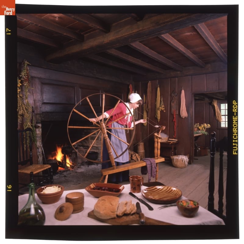 In 1977, Henry Ford Museum acquired an 18th-century farmhouse from northeastern Connecticut for Greenfield Village. It was originally interpreted with a focus on architecture and antiques, but demonstrations of colonial-era activities enlivened the structure in the 1980s. Later, based on new research, activities more accurately recreated the life of the home's original occupants, the Daggett family, in the 1760s.