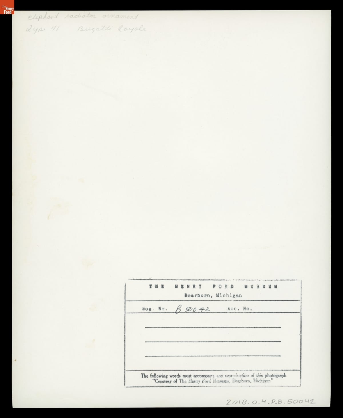 1931 Bugatti Royale Elephant Radiator Ornament, 1968