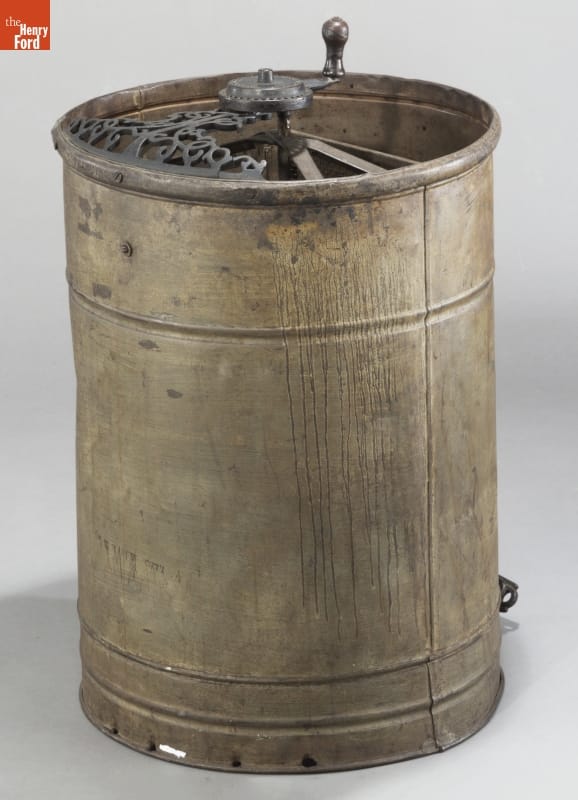 A swarm of bees captured Amos Root's attention in 1869. He began publishing Gleanings in Bee Culture in 1873 and included testimonials about this "Novice extractor." Root improved the extractor over 25 years. Beekeepers used a galvanized metal version by 1898, advertised as stronger and more durable than earlier versions, to separate honey from comb to satisfy a growing number of honey consumers.