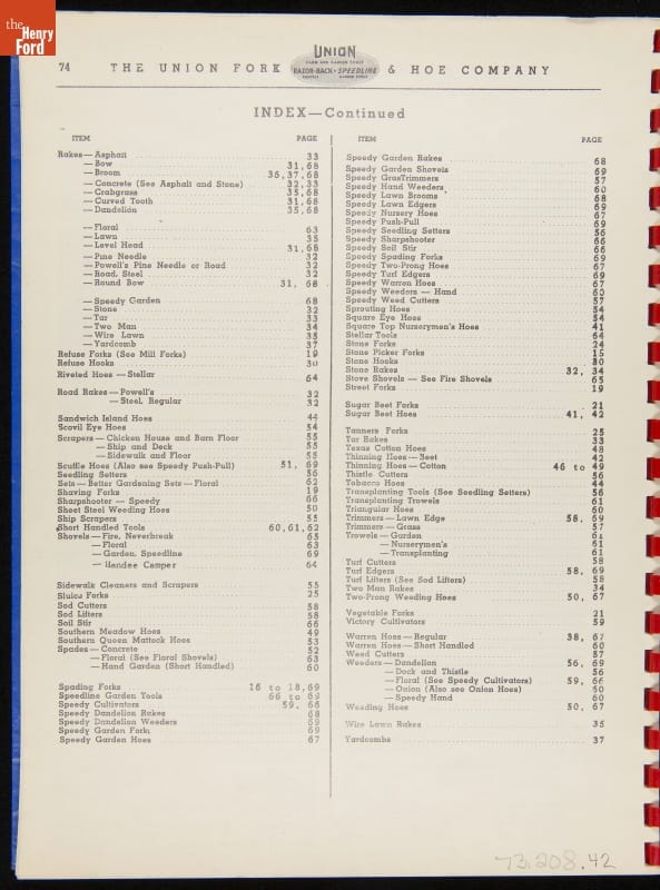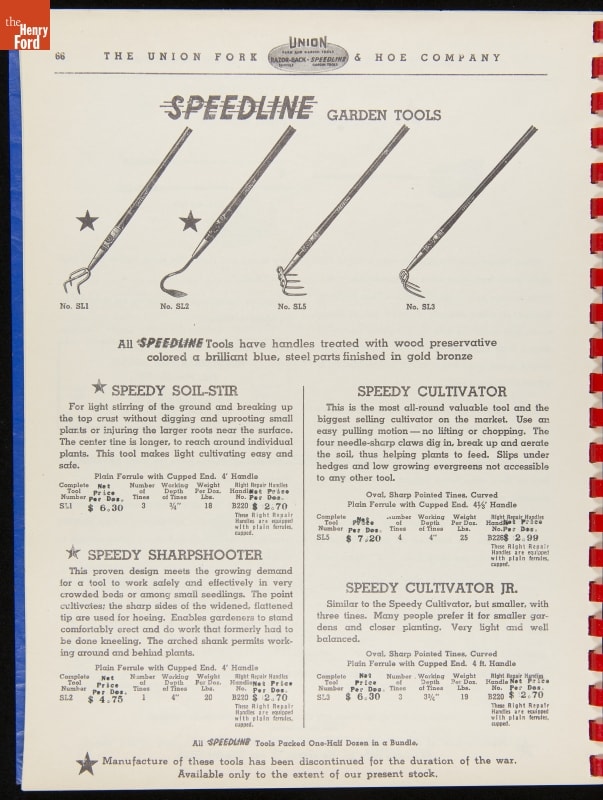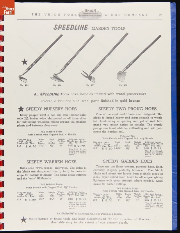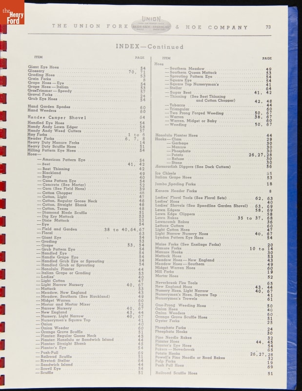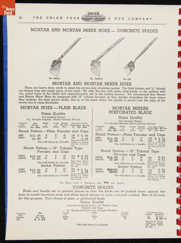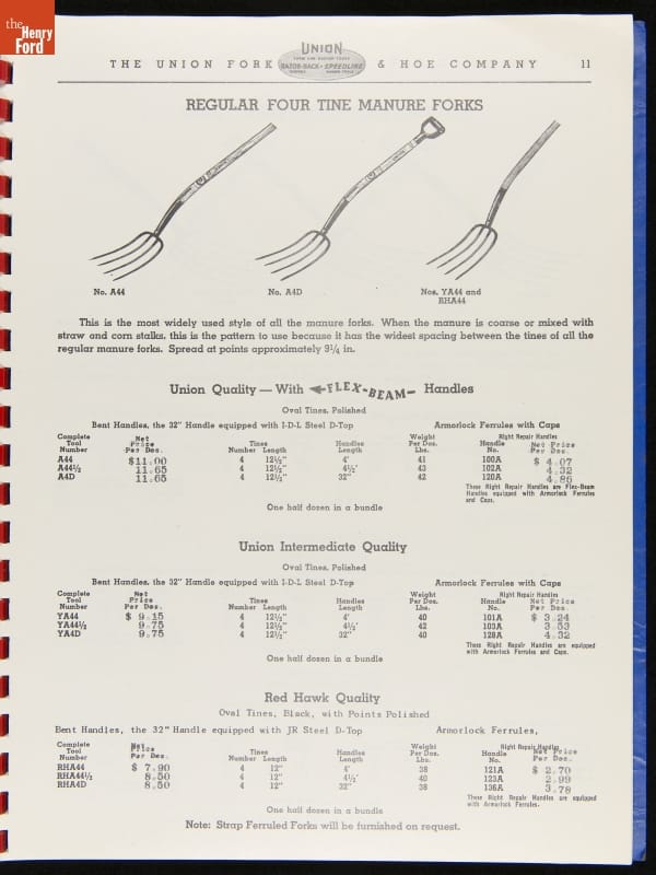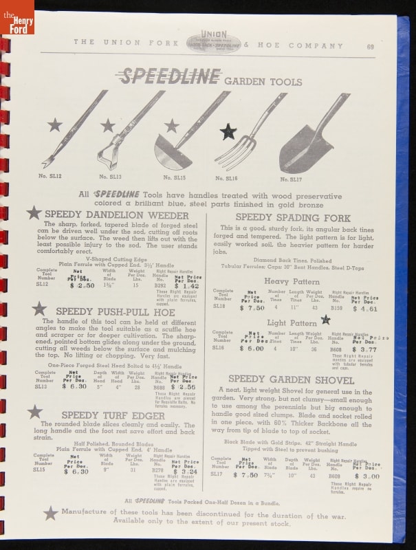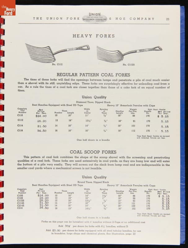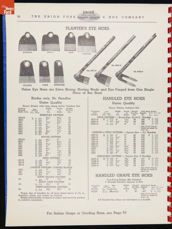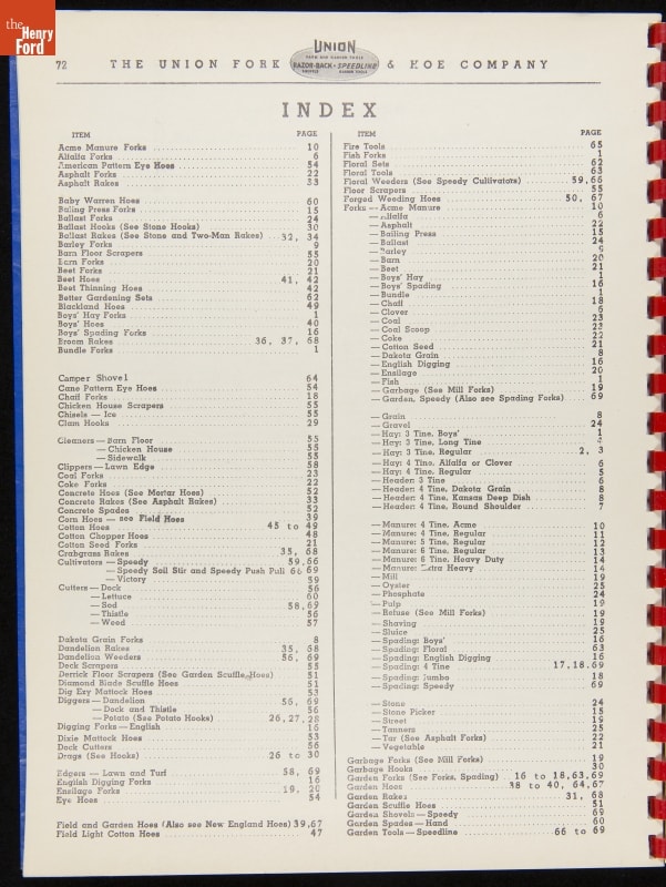 THF287911 / Union Fork & Hoe Company Catalog and Price List No. 142, August 1, 1942 / inside back cover