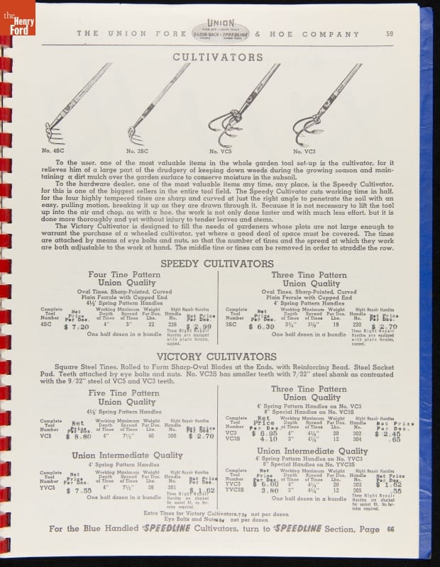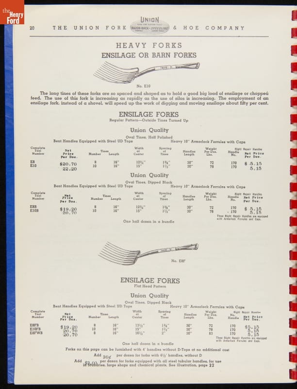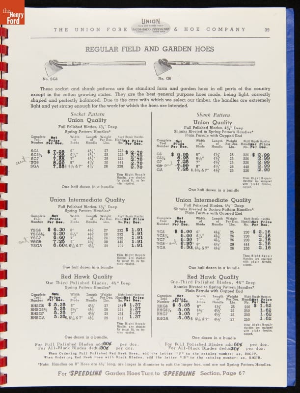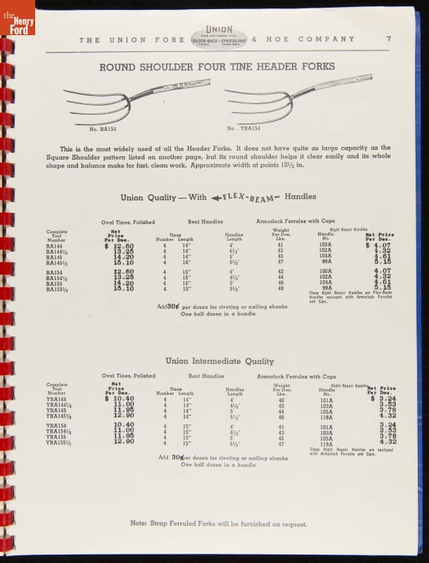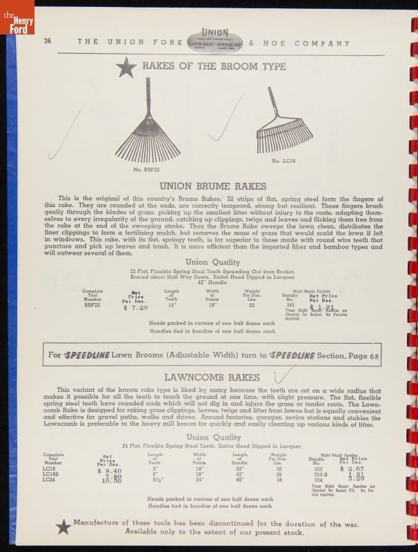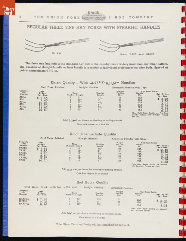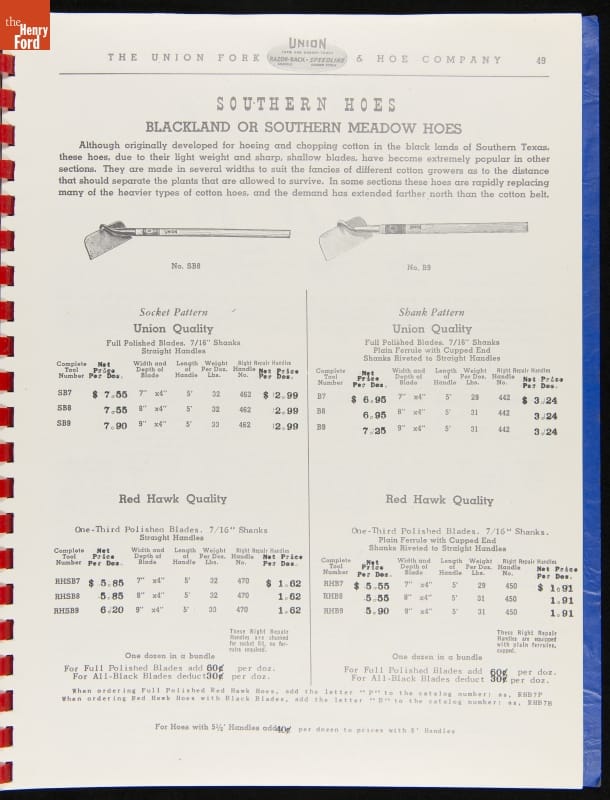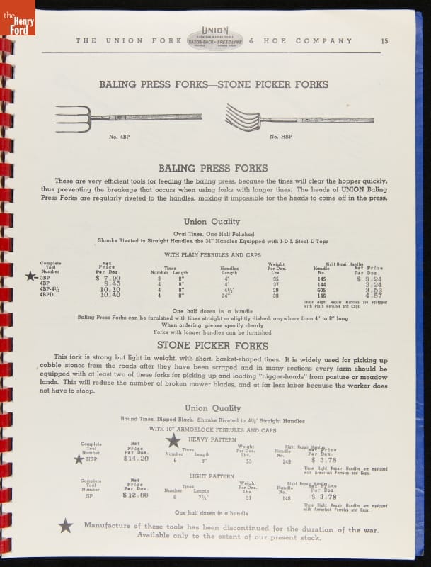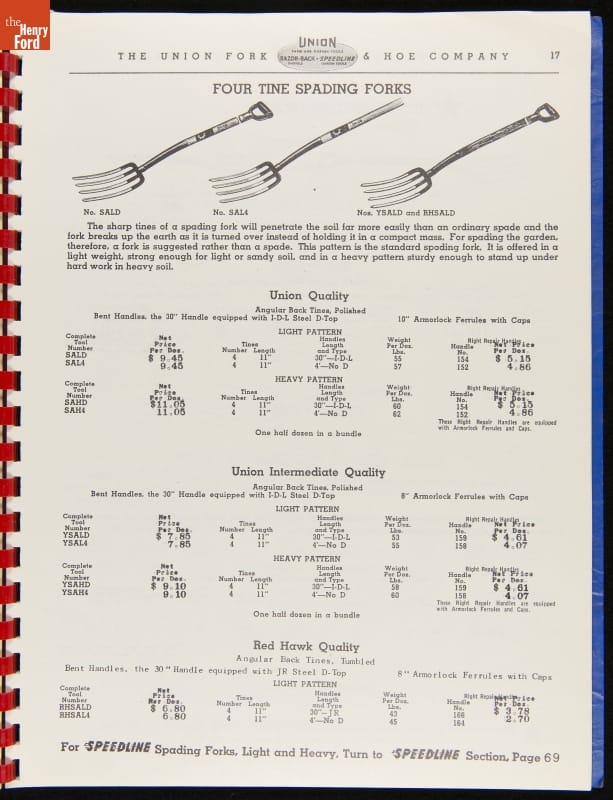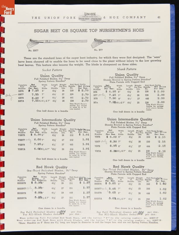 THF287911 / Union Fork & Hoe Company Catalog and Price List No. 142, August 1, 1942 / inside back cover