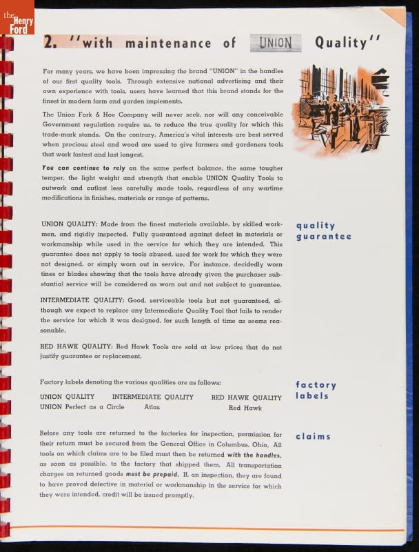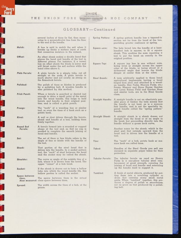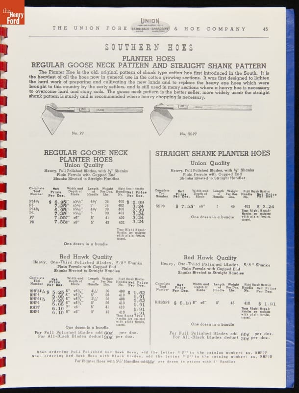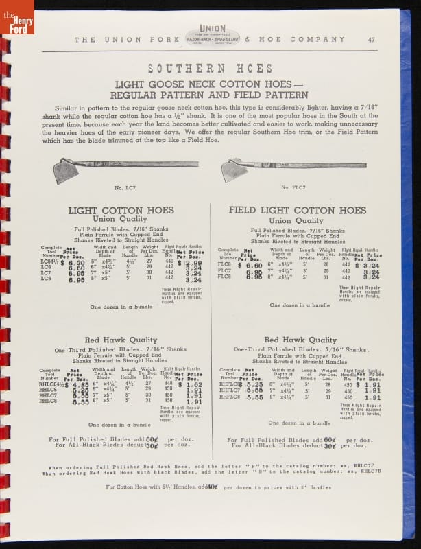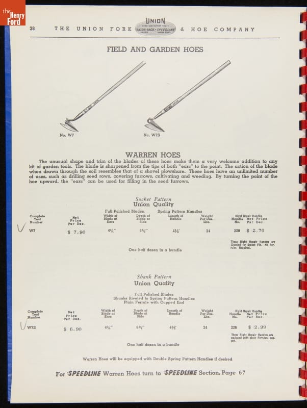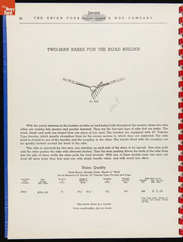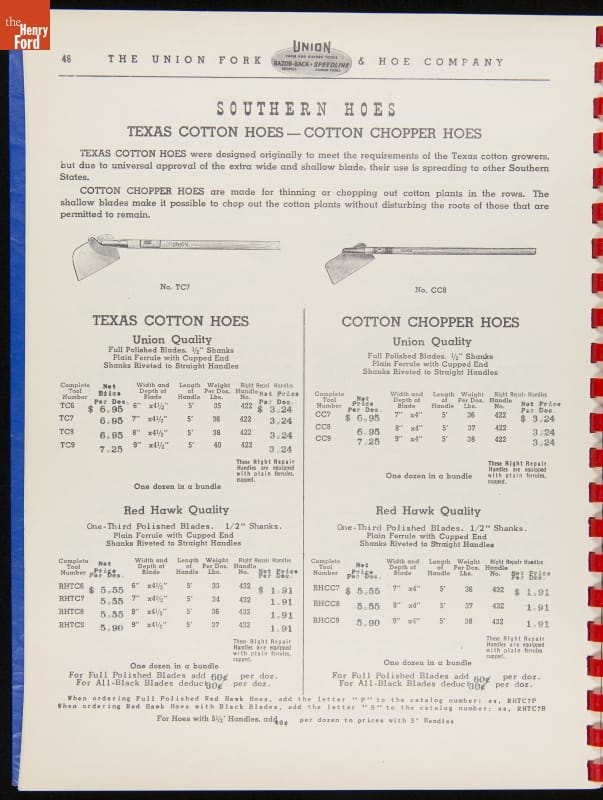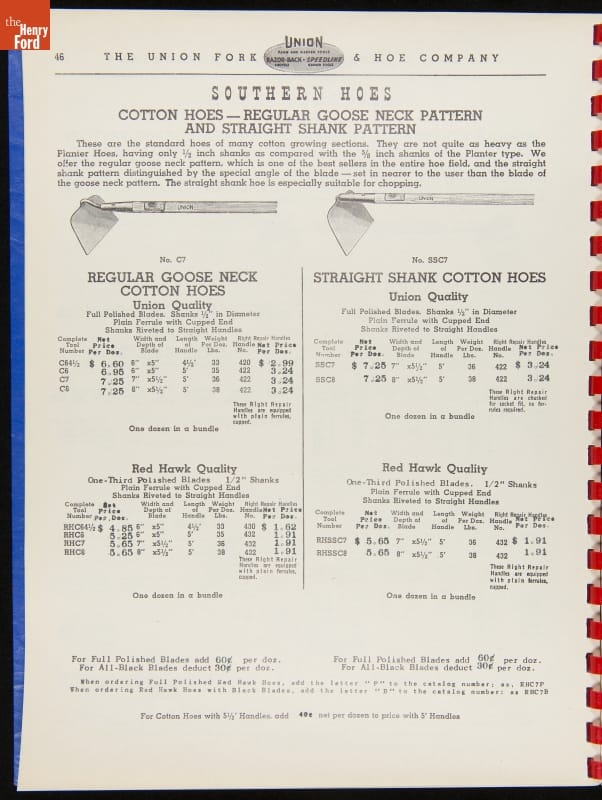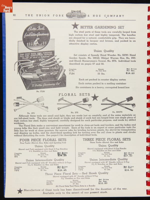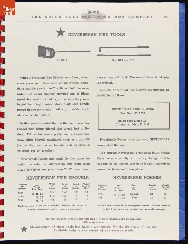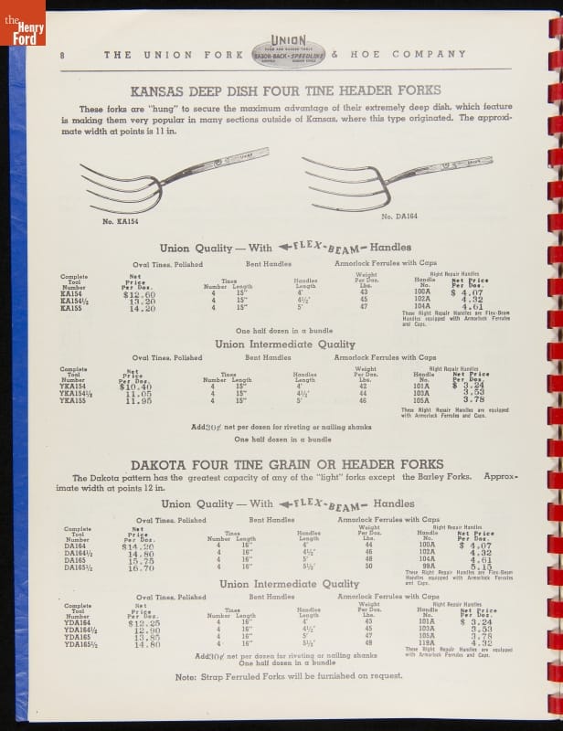 THF287911 / Union Fork & Hoe Company Catalog and Price List No. 142, August 1, 1942 / inside back cover