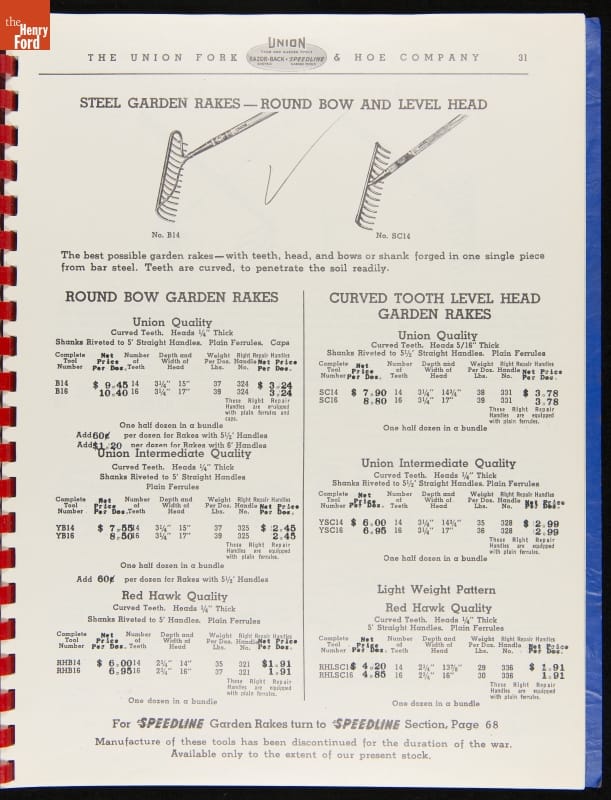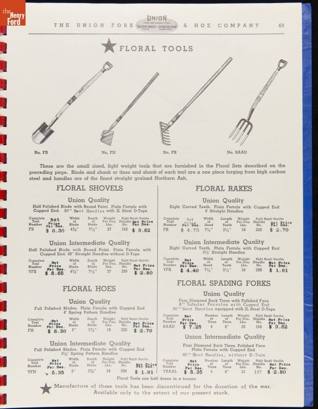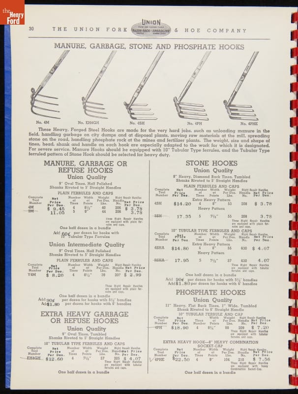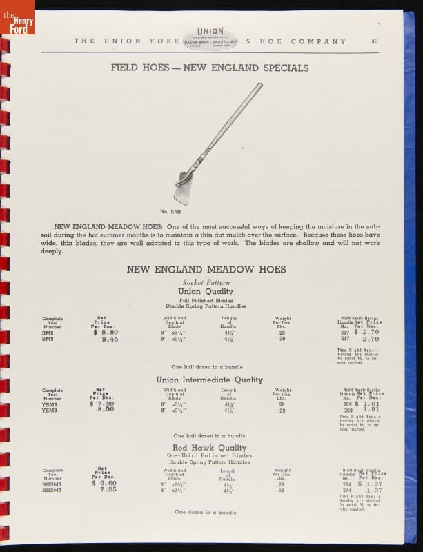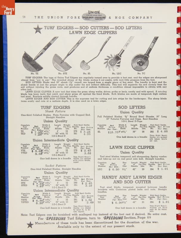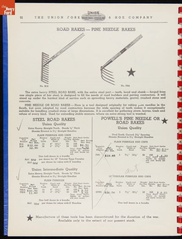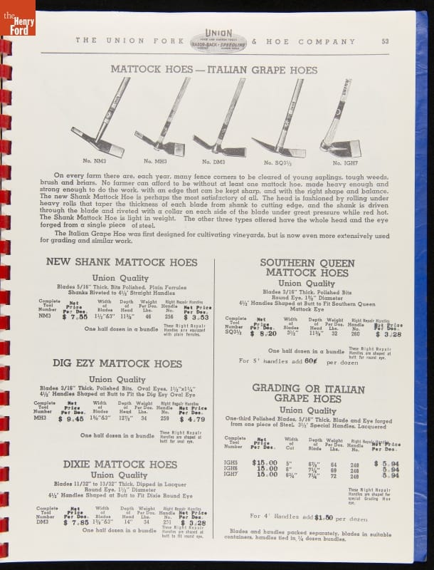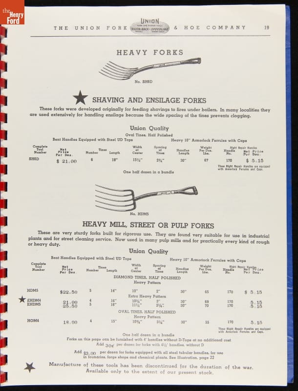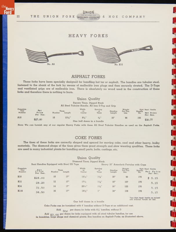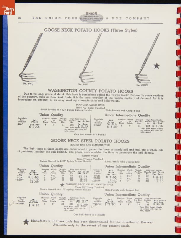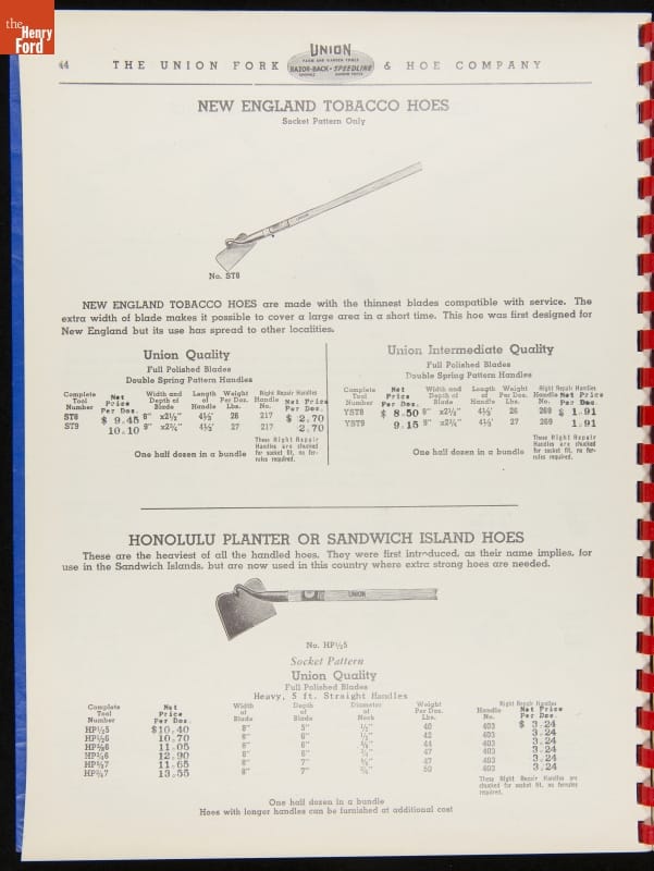 Union Fork & Hoe Company Catalog and Price List No. 142, August 1, 1942