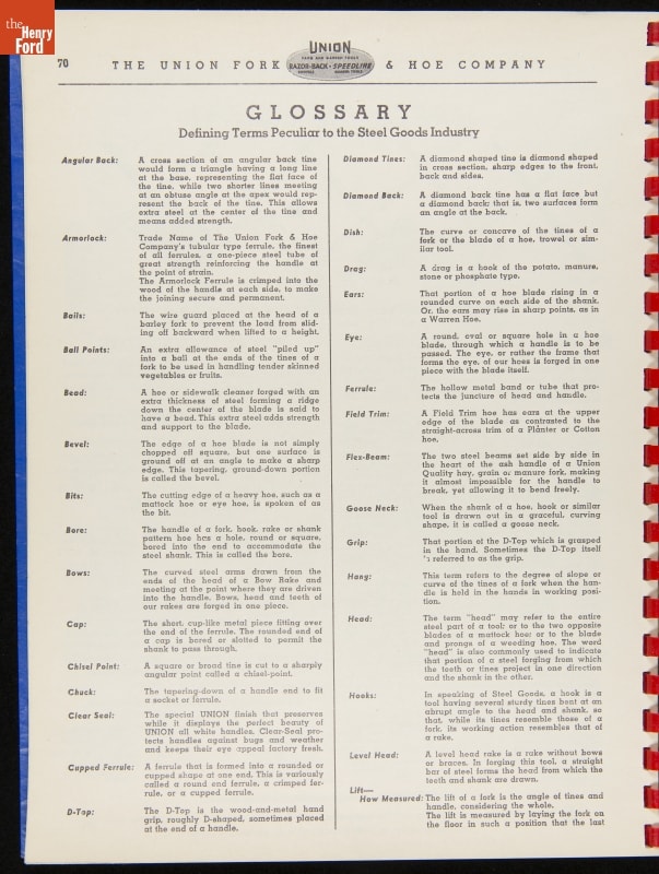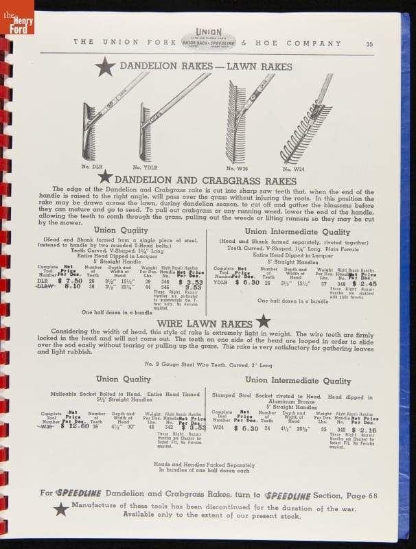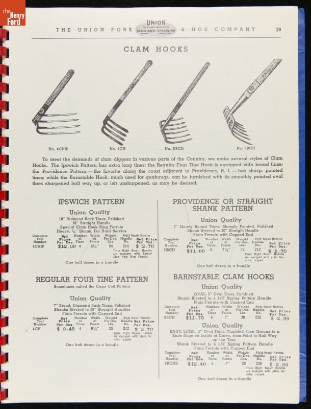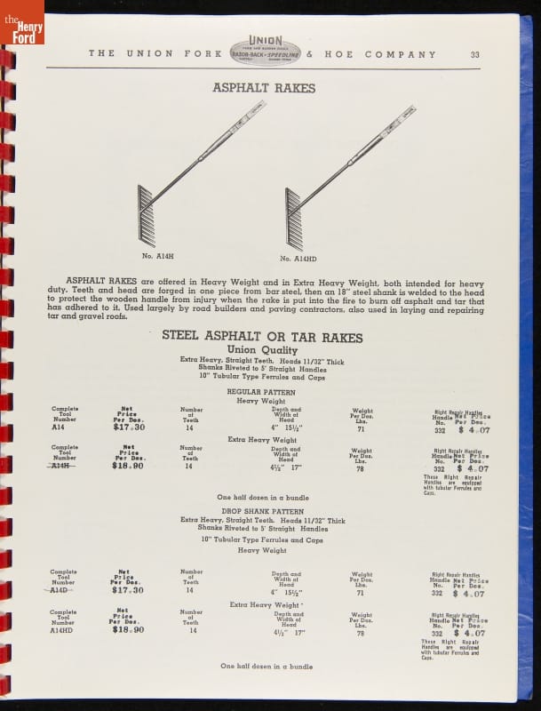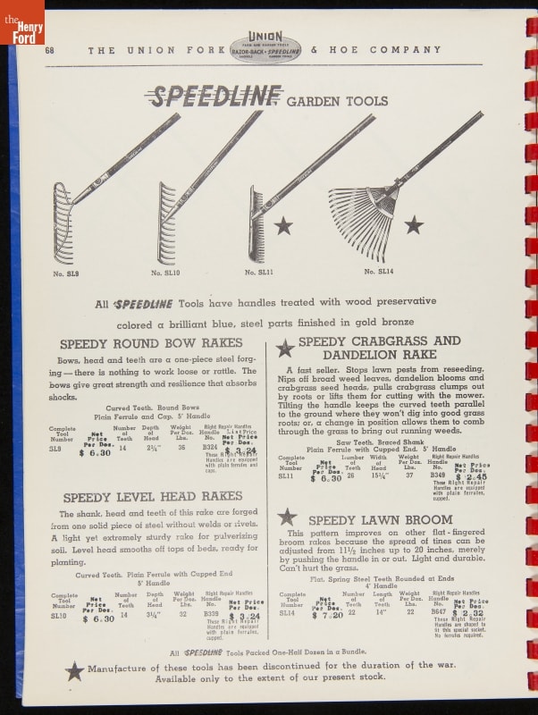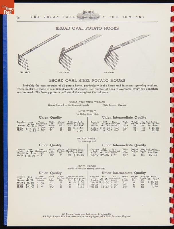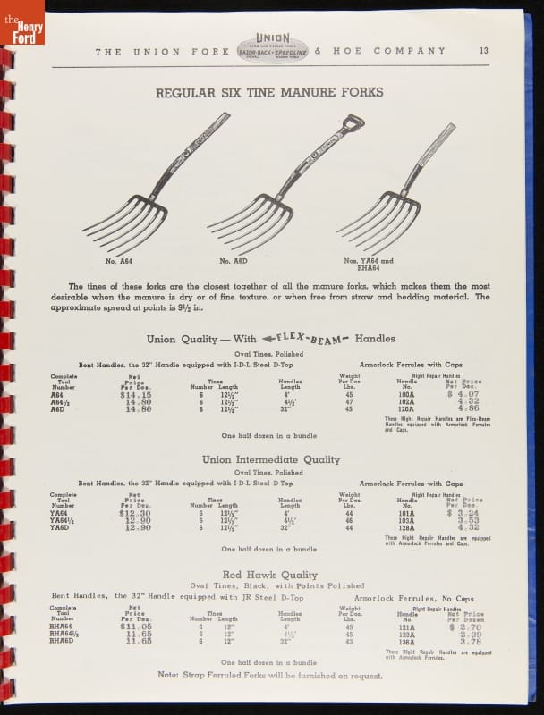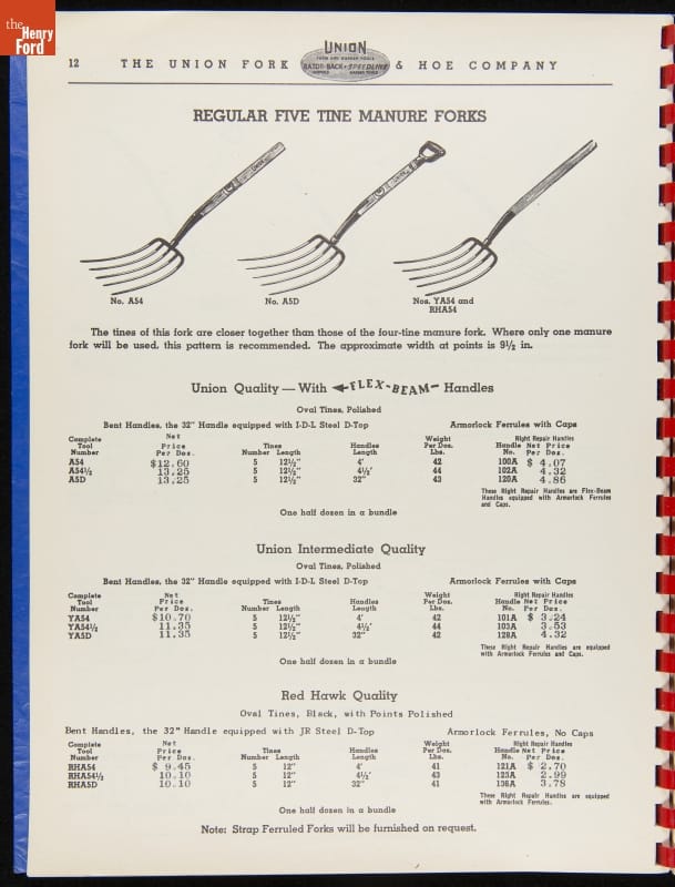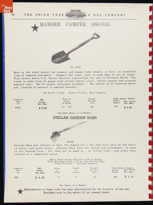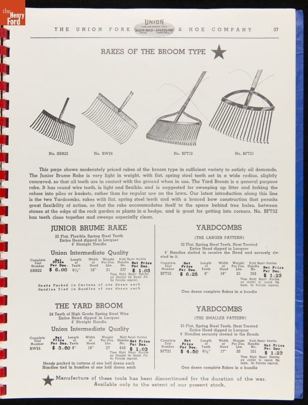 Union Fork & Hoe Company Catalog and Price List No. 142, August 1, 1942
