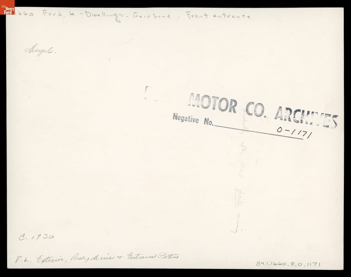 Front Entrance to Fair Lane, Home of Henry Ford, circa 1930
