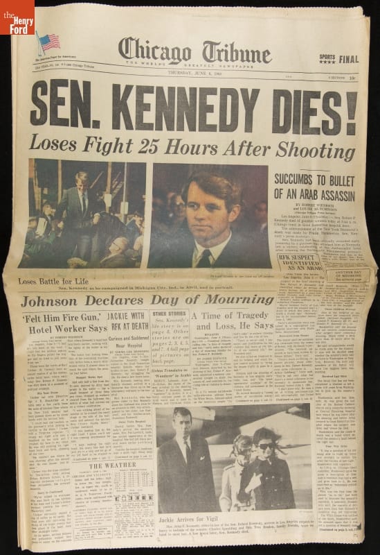 Chicago Tribune Newspaper, June 6, 1968, "Senator Kennedy Dies!"
