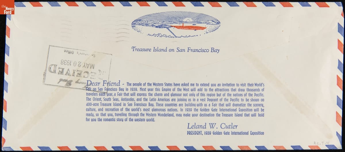 1938 Air Mail Envelope Promoting National Air Mail Week and the Golden Gate International Exposition