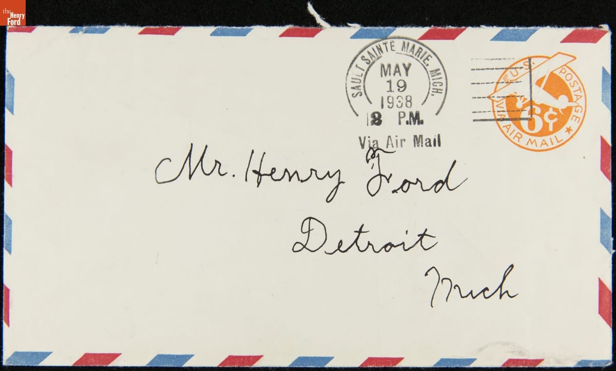 Envelope Sent by Air Mail to Henry Ford from Sault Sainte Marie, Michigan for National Air Mail Week, May 1938