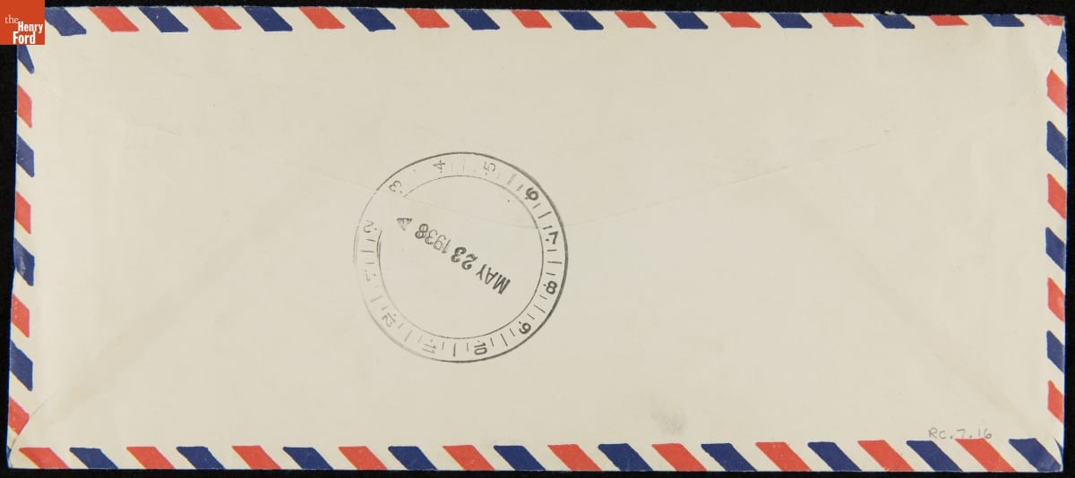 Envelope Sent by Air Mail to Henry Ford from Tustin, Orange County, California for National Air Mail Week, May 1938