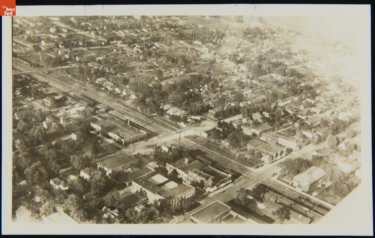 Aerial Photo of Carbondale, Illinois, Showing Airmarker on a Ford Dealer's Roof, 1929