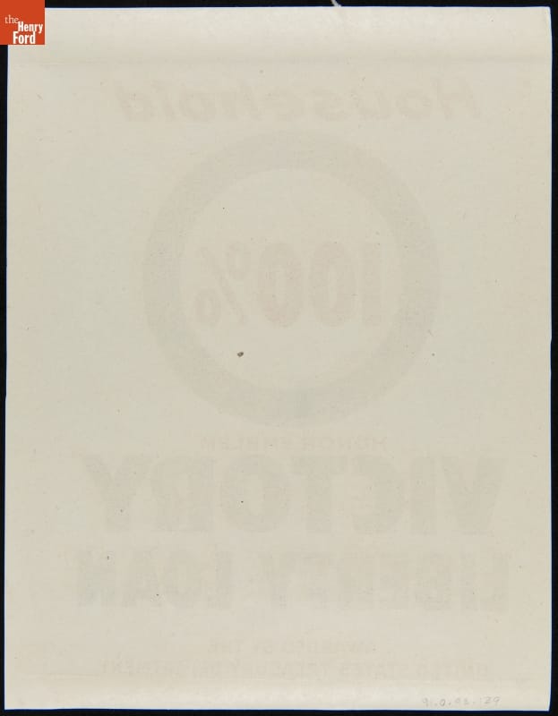 "Household 100% Honor Emblem Victory Liberty Loan," Window Sign, 1917-1918