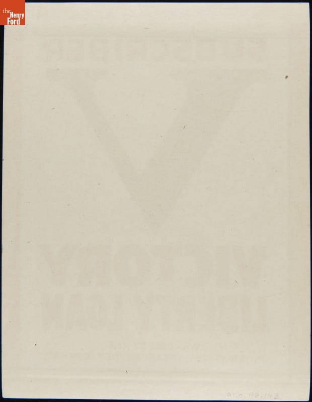 "Subscriber "V" Victory Liberty Loan," Window Sign, 1917-1918