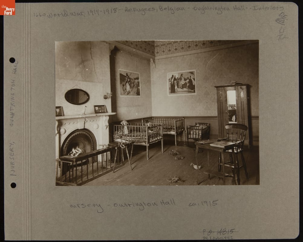 Percival Perry, chairman of Ford Motor Company Limited (Ford of Britain) during World War I, relayed the plight of Belgian refugees to Henry and Clara Ford. With their authority, Perry leased Oughtrington Hall to accommodate a select group of Belgian refugees. The renovated mansion on the 30-acre estate became a temporary respite where the displaced found food, shelter, education, and work.