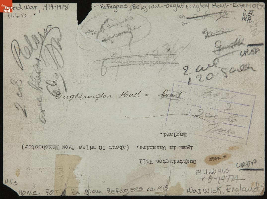 Percival Perry, chairman of Ford Motor Company Limited (Ford of Britain) during World War I, relayed the plight of Belgian refugees to Henry and Clara Ford. With their authority, Perry leased Oughtrington Hall to accommodate a select group of Belgian refugees. The renovated mansion on the 30-acre estate became a temporary respite where the displaced found food, shelter, education, and work.