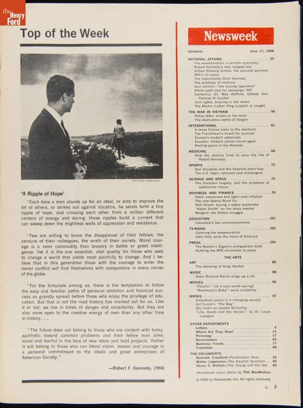 Newsweek Magazine, Issue of June 17, 1968, "Robert F. Kennedy 1925-1968"