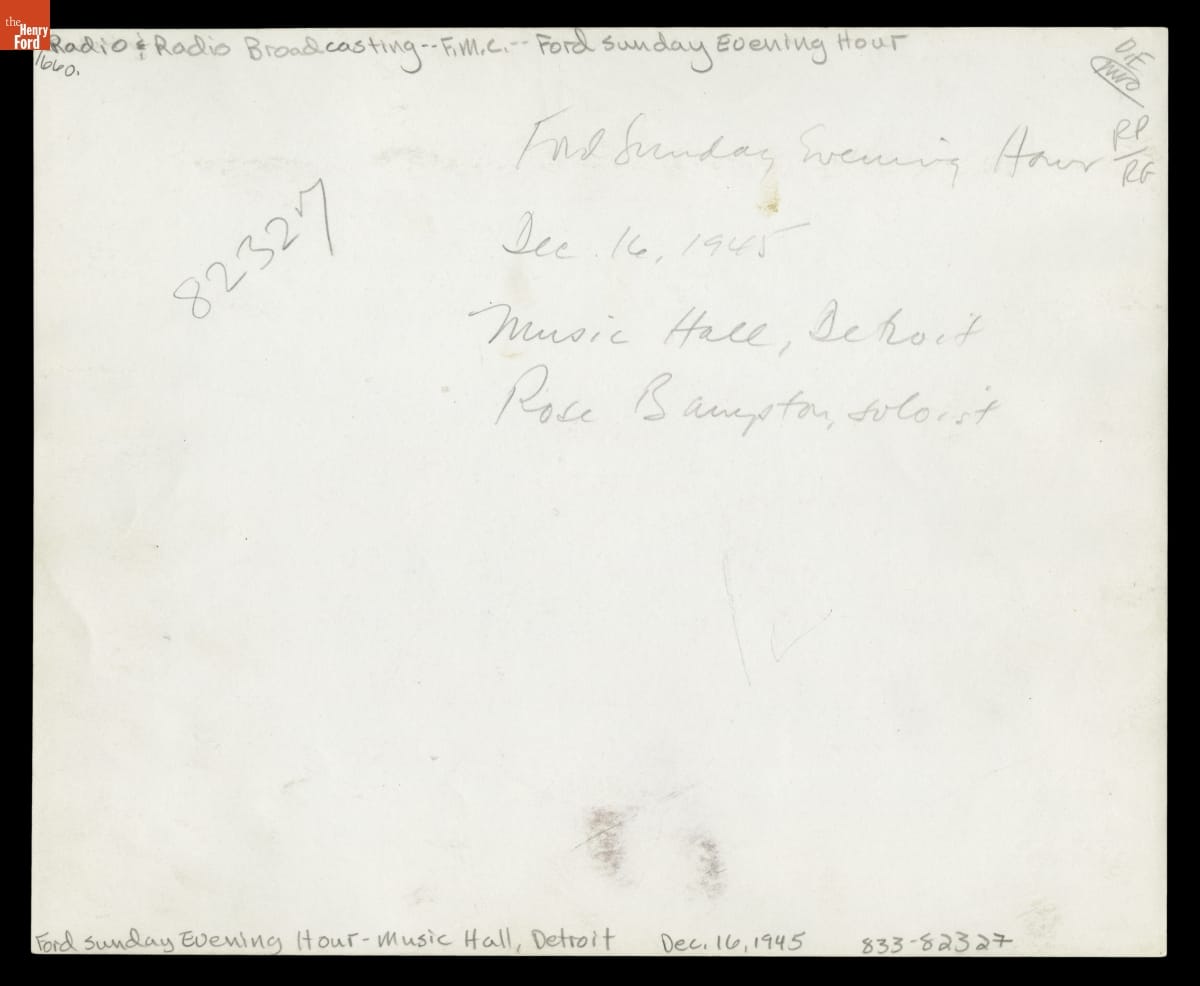 Soloist Rose Bampton Performing on the "Ford Sunday Evening Hour" Program, December 16, 1945