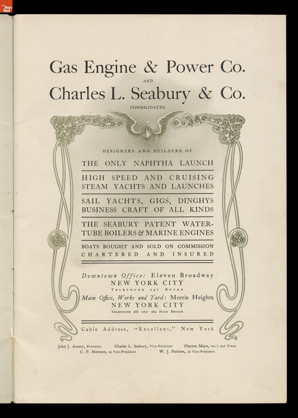Trade Catalog, Gas Engine & Power Co. and Charles L. Seabury & Co. Consolidated, 1902