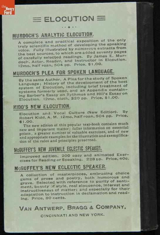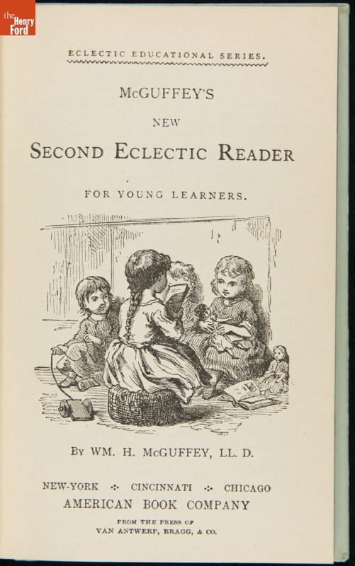 Henry Ford remembered fondly the McGuffey Readers he studied in the one-room schools of his youth. He even had them reprinted in 1930, so that students in his Edison Institute Schools could learn from them as well. Ford -- having looked up some of his childhood classmates -- gave this reprinted Reader to Olive Burdeno, who had attended school with Ford in the 1870s.
