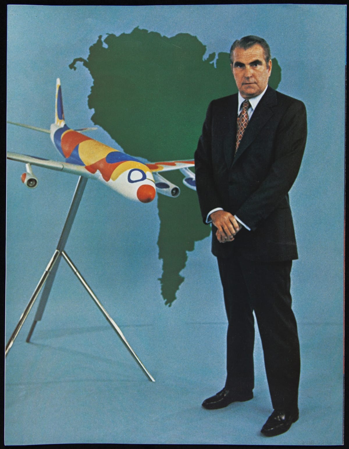 Dallas-based Braniff Airways began service to South America in 1973. To promote its new routes, the airline commissioned artist Alexander Calder to create a special livery for one of its airplanes. Calder's "Flying Colors of South America" paint scheme featured colors and designs evocative of South America and Latin America.
