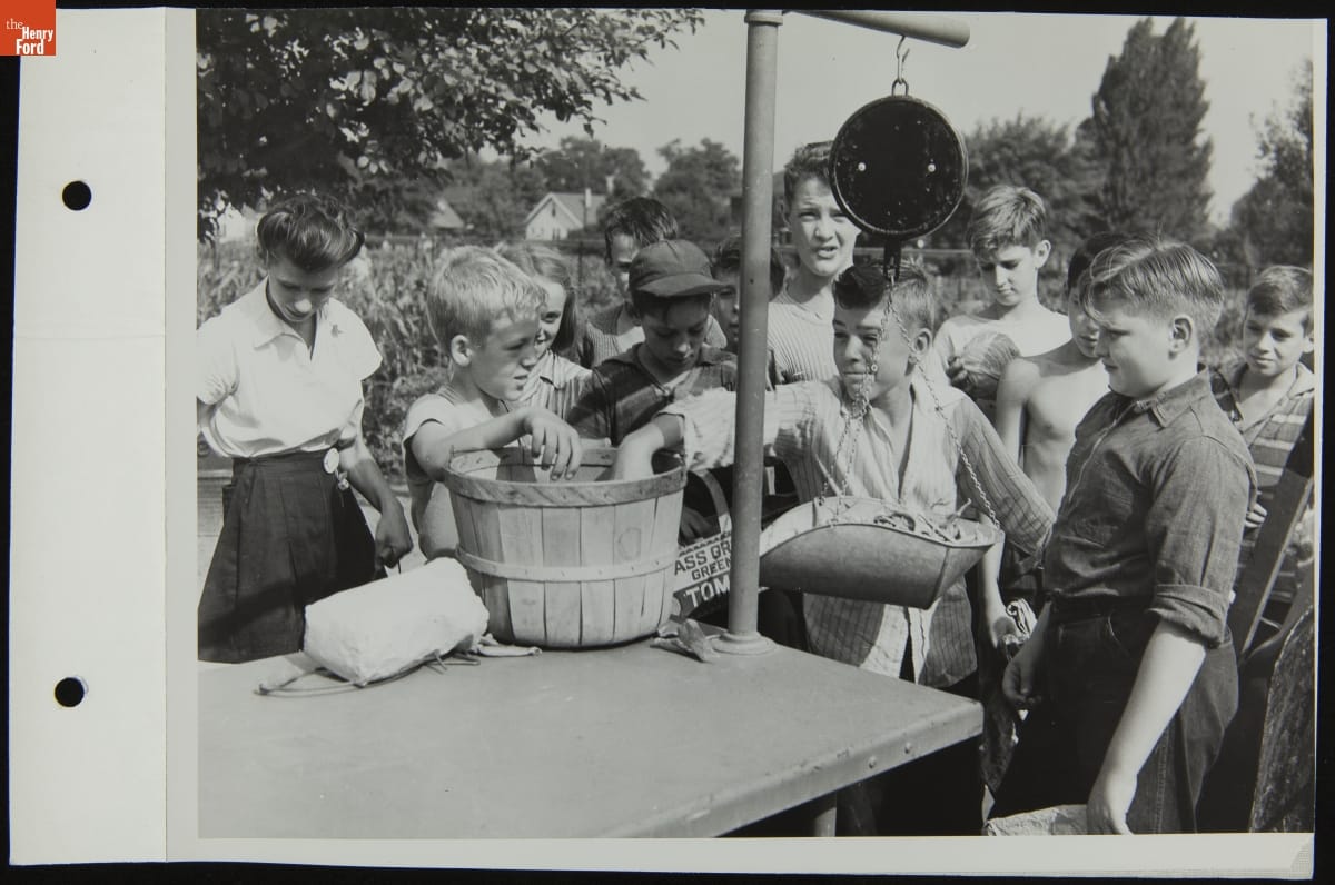 Boys Weighing Produce from Victory Garden, August 1944