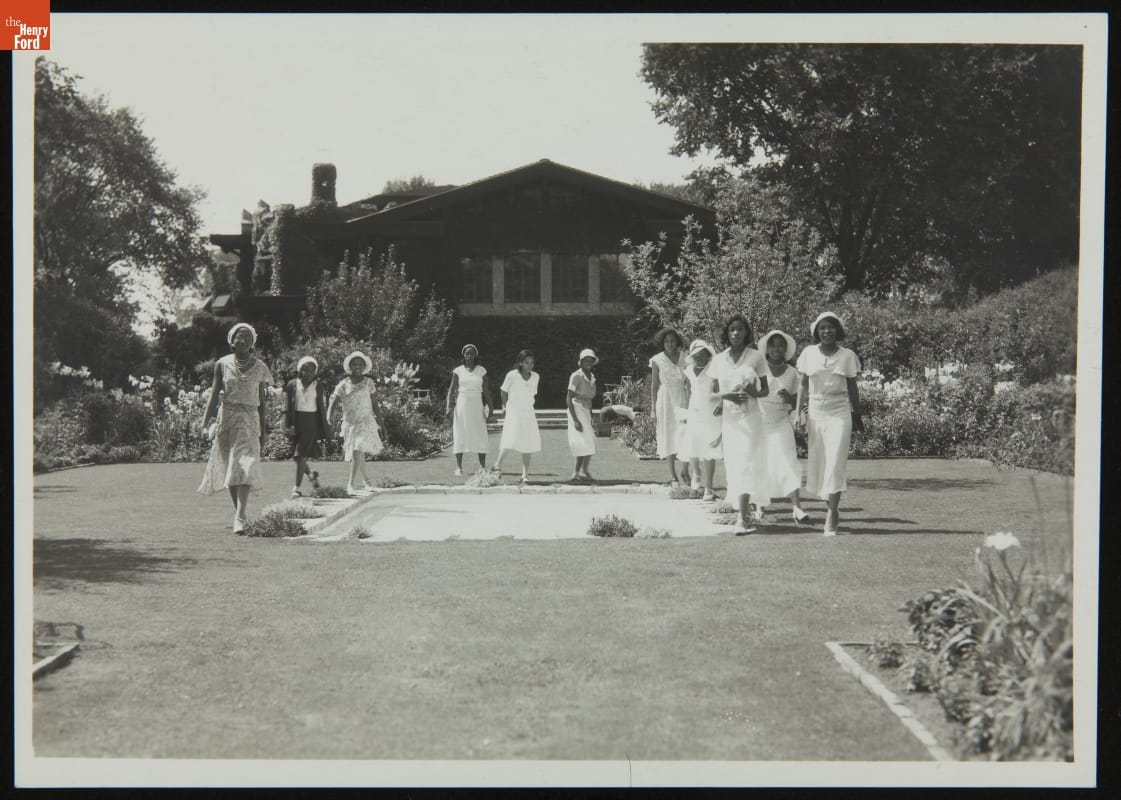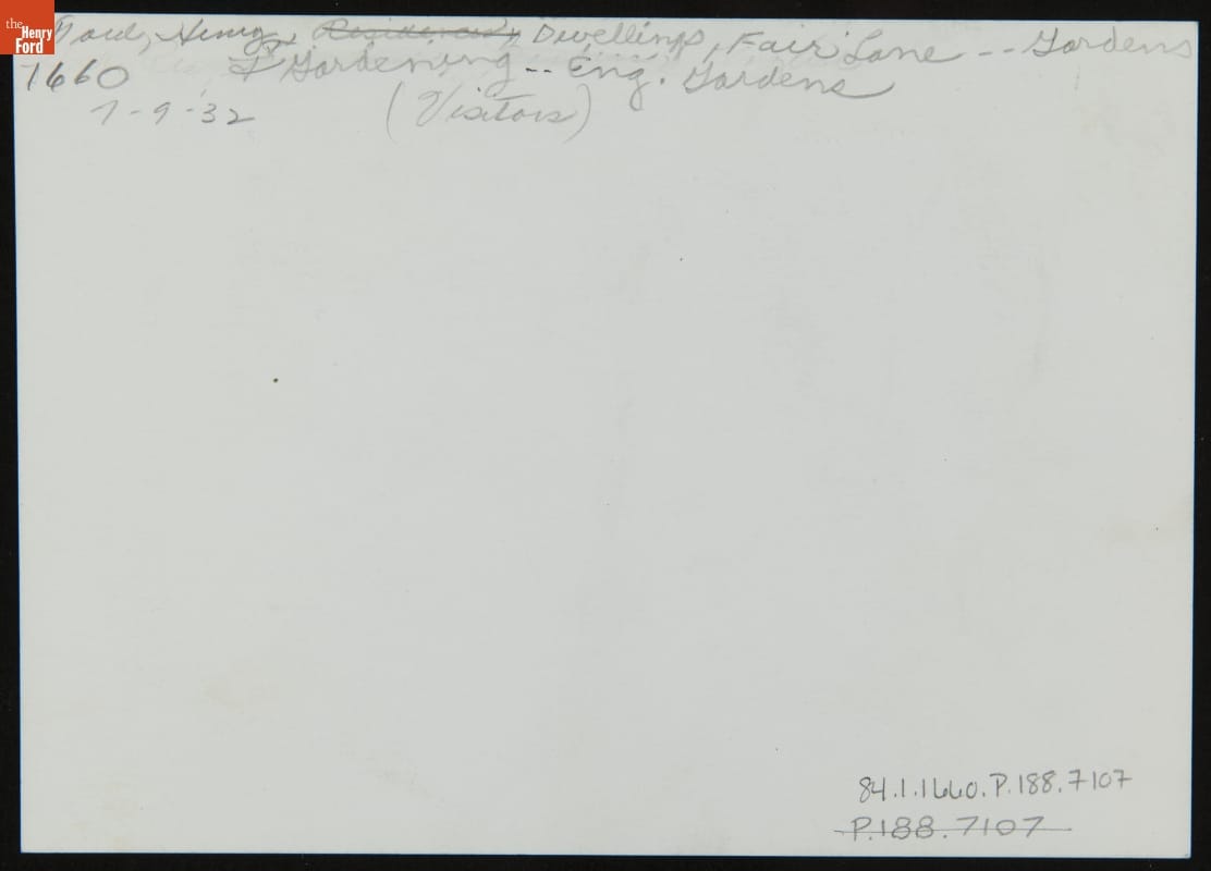 Visitors in the English Garden at Fair Lane Estate, July 1932