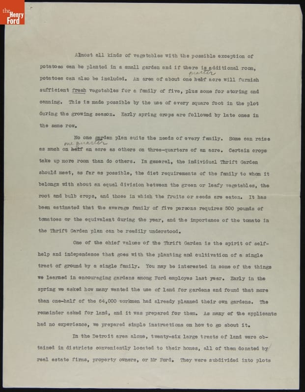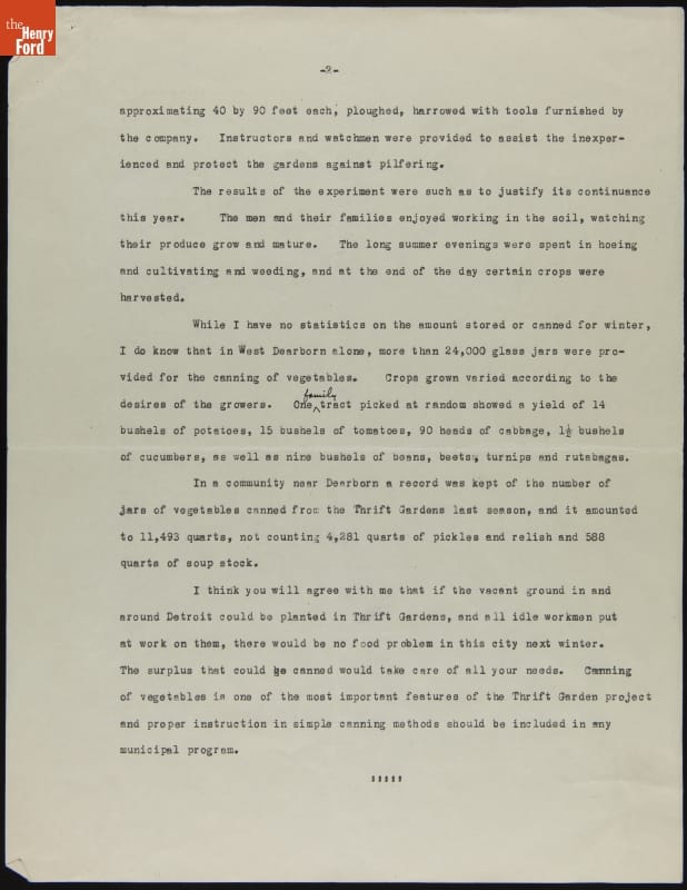 Thrift Garden Program in the Detroit, Michigan Area, circa 1933