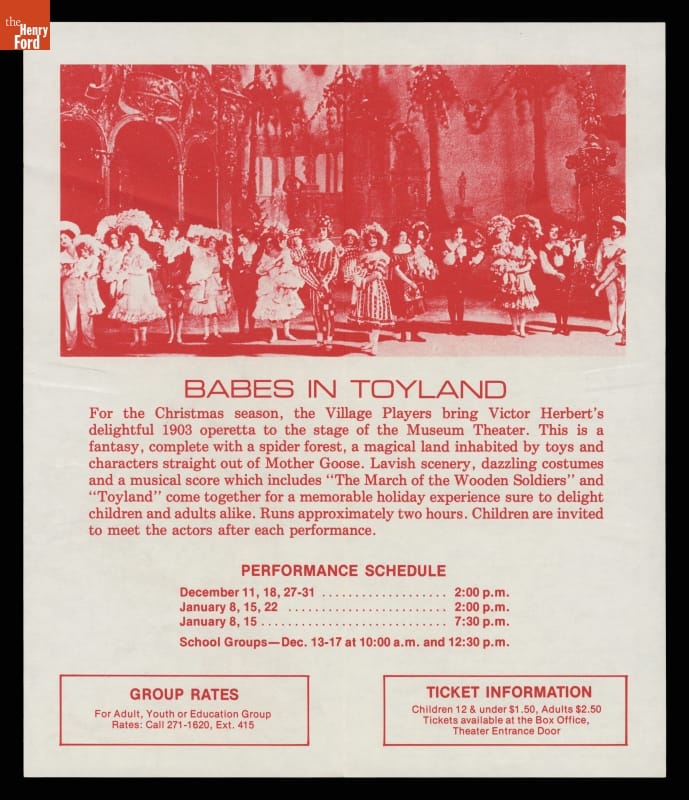 Advertising Brochure for "Babes in Toyland" at Henry Ford Museum Theater, 1976-1977
