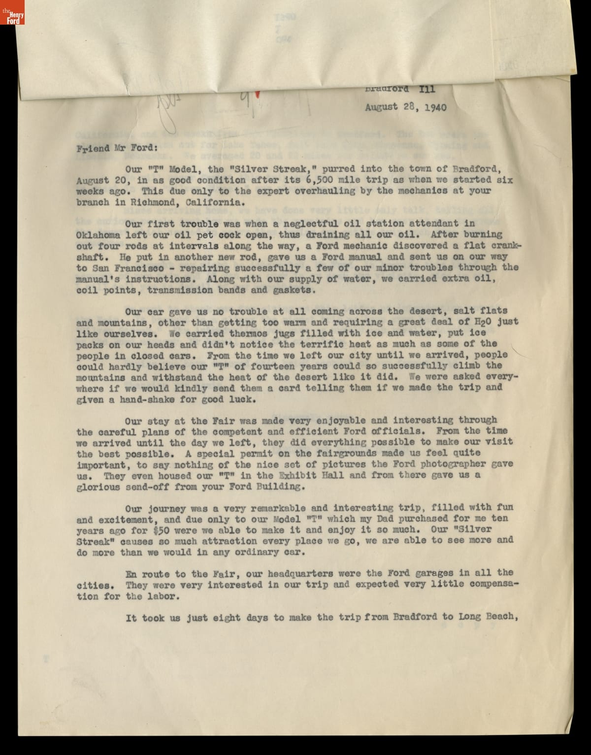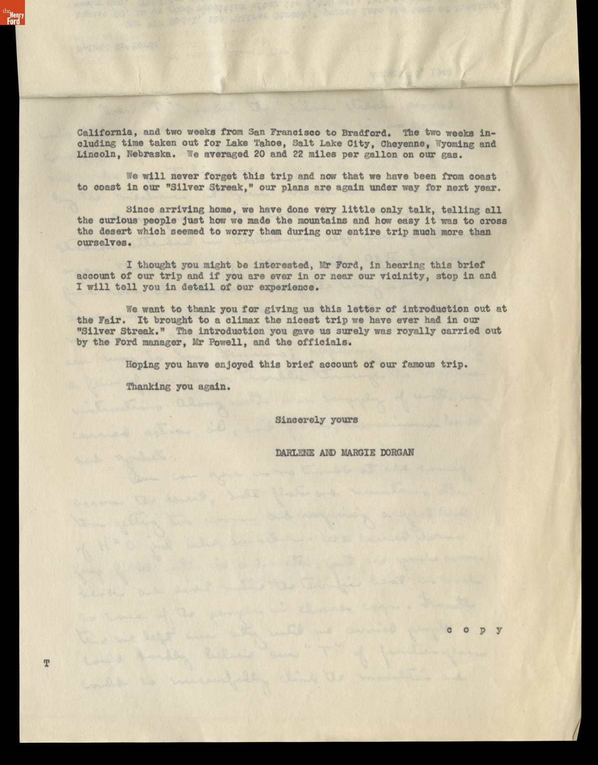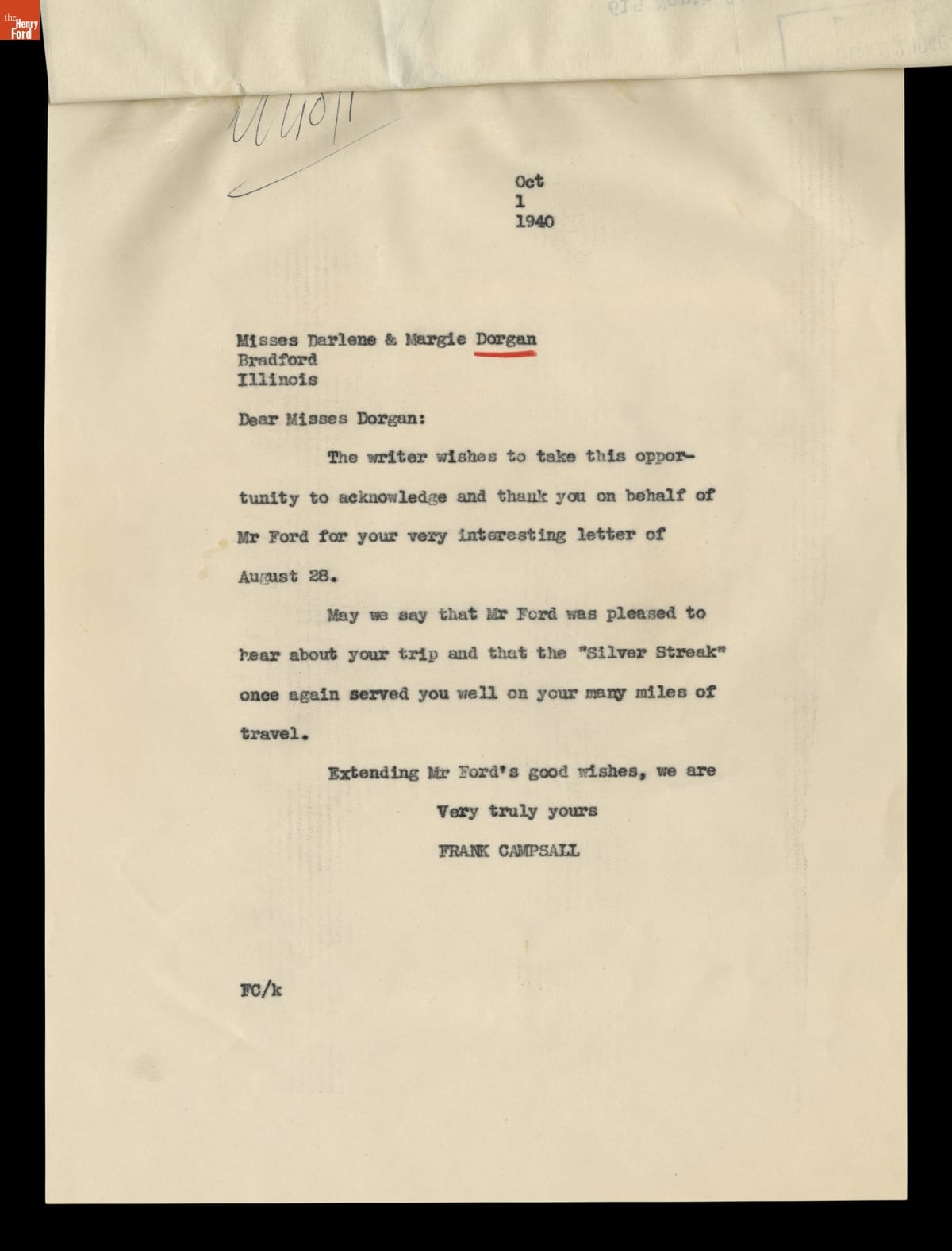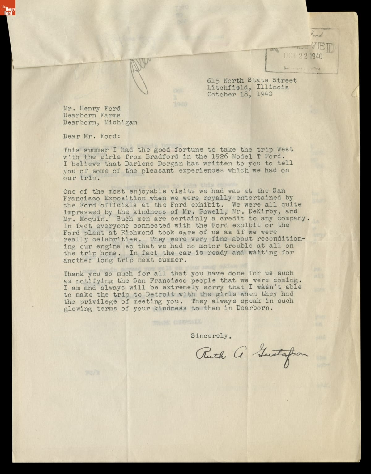 Correspondence between the Bradford, Illinois "Girls in the Model T" and the Office of Henry Ford, 1940