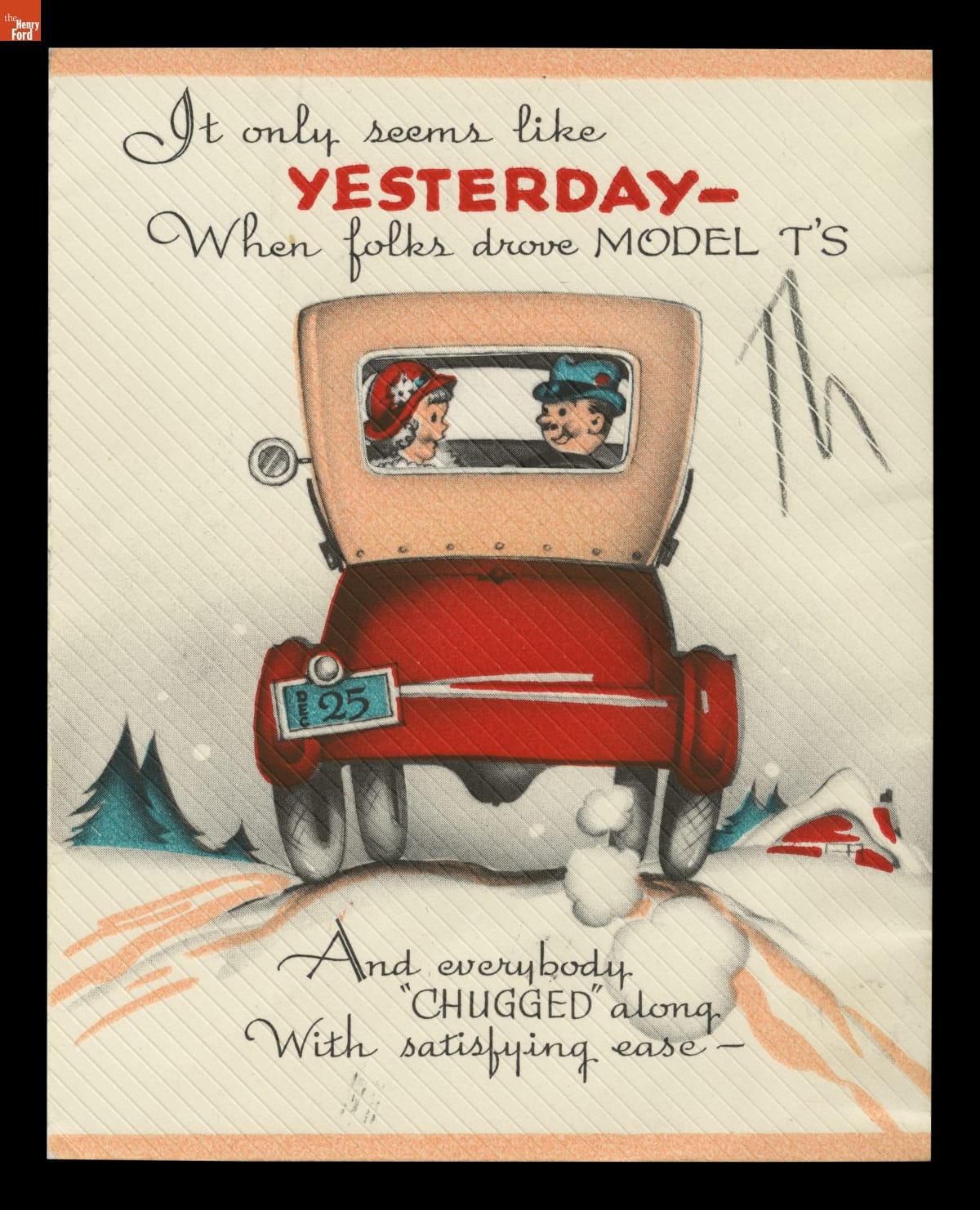 Darlene Dorgan, accompanied by four or five young women, spent summer vacations during the 1930s and early 1940s traveling in her 1926 Model T. The carefree troupes from Bradford, Illinois, roamed the United States and Canada in the self-painted silver "T". After driving to Dearborn, Michigan, to wish Henry Ford a happy birthday in 1938, the group kept in touch with the famed automaker.