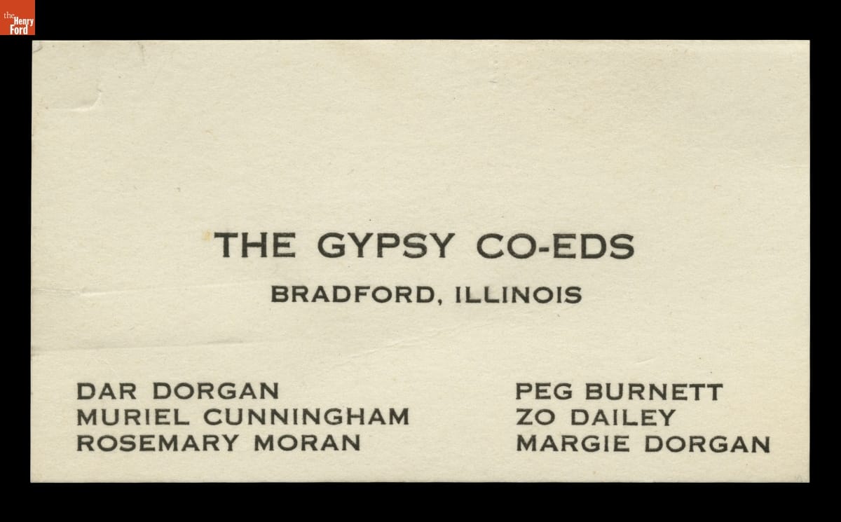 Darlene Dorgan, accompanied by four or five young women, spent summer vacations during the 1930s and early 1940s traveling in her 1926 Model T. The carefree troupes from Bradford, Illinois, roamed the United States and Canada in the self-painted silver "T". After driving to Dearborn, Michigan, to wish Henry Ford a happy birthday in 1938, the group kept in touch with the famed automaker.