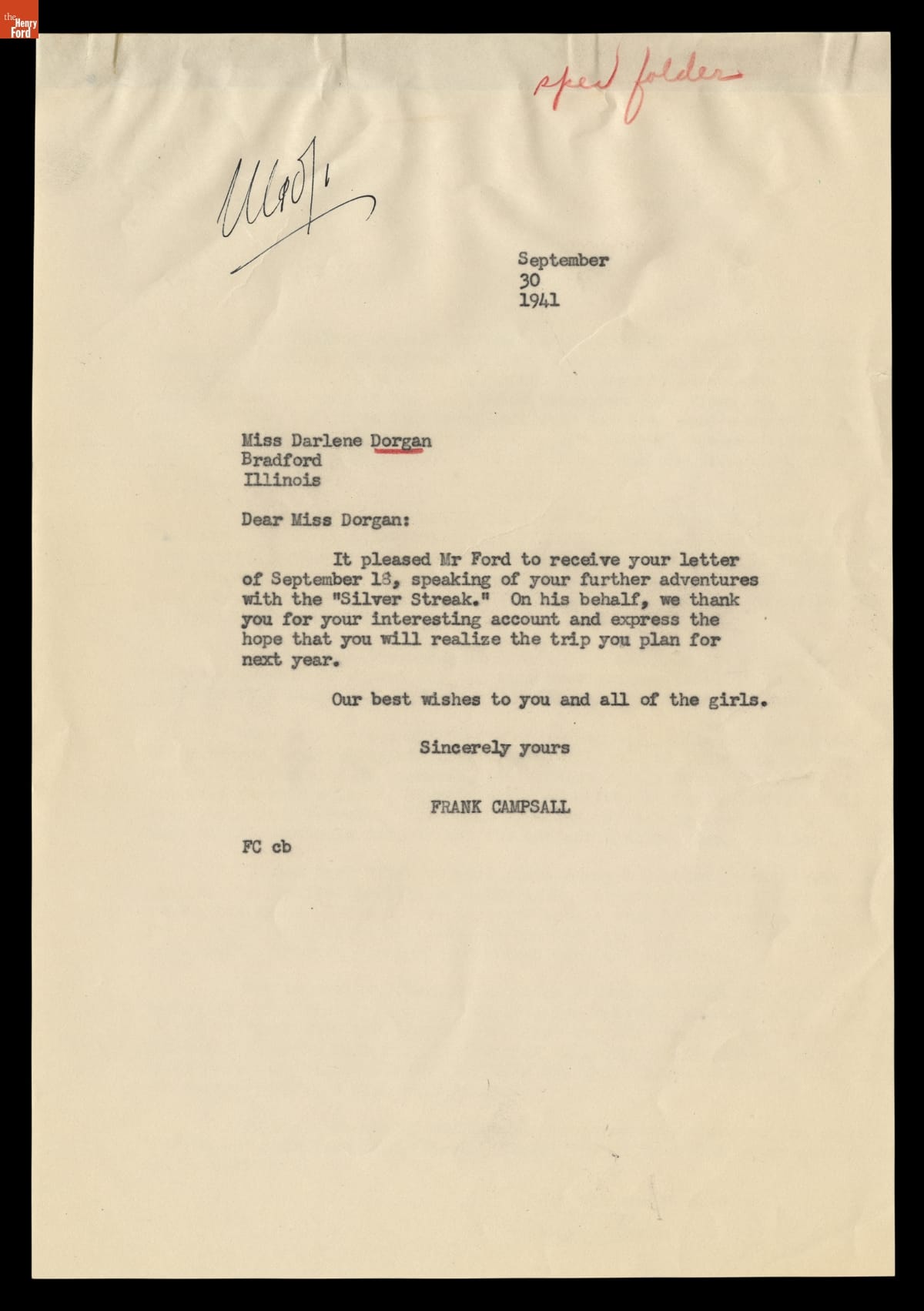 Correspondence between Darlene Dorgan and the Office of Henry Ford, September 1941