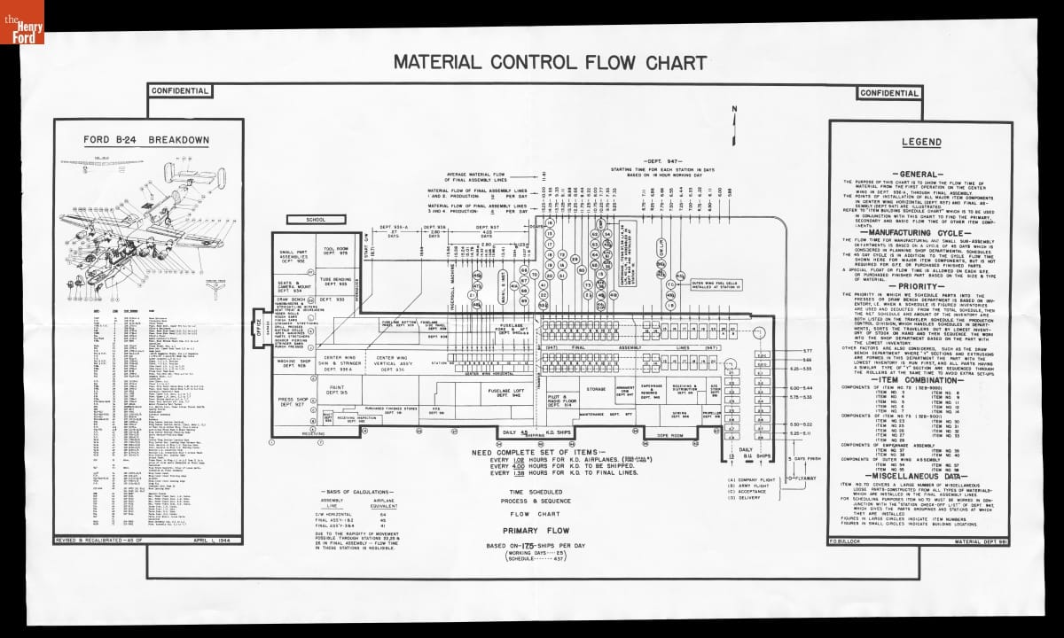 Material Control Flow Chart, Ford Motor Company Willow Run Bomber Plant, April 1944