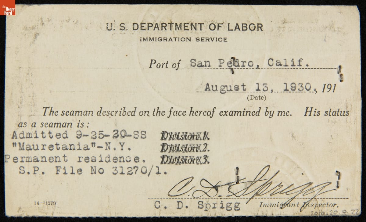 Seaman's Identification Card for Hamid Durmisevich, June 24 - August 13, 1930
