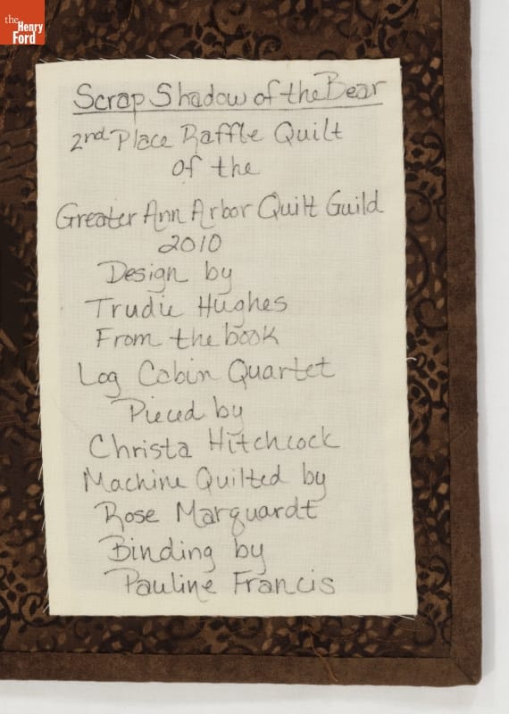 "Scrap Shadow of the Bear" Quilt, Won in a Fundraiser Benefiting SafeHouse, Ann Arbor, Michigan, 2010