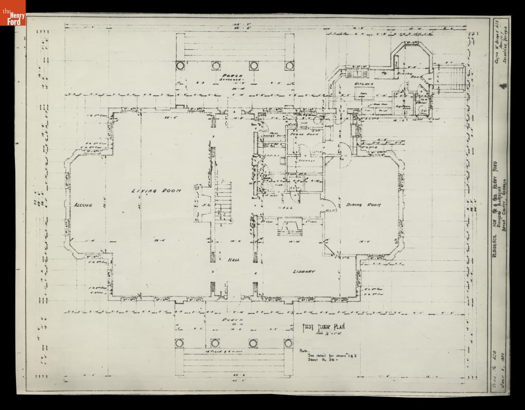 First Floor Plan, Residence for Mr. & Mrs. Henry Ford, Richmond Plantation, Bryan County, Georgia, July 1, 1936