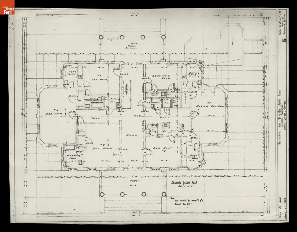 Second Floor Plan, Residence for Mr. & Mrs. Henry Ford, Richmond Plantation, Bryan County, Georgia, July 1, 1936